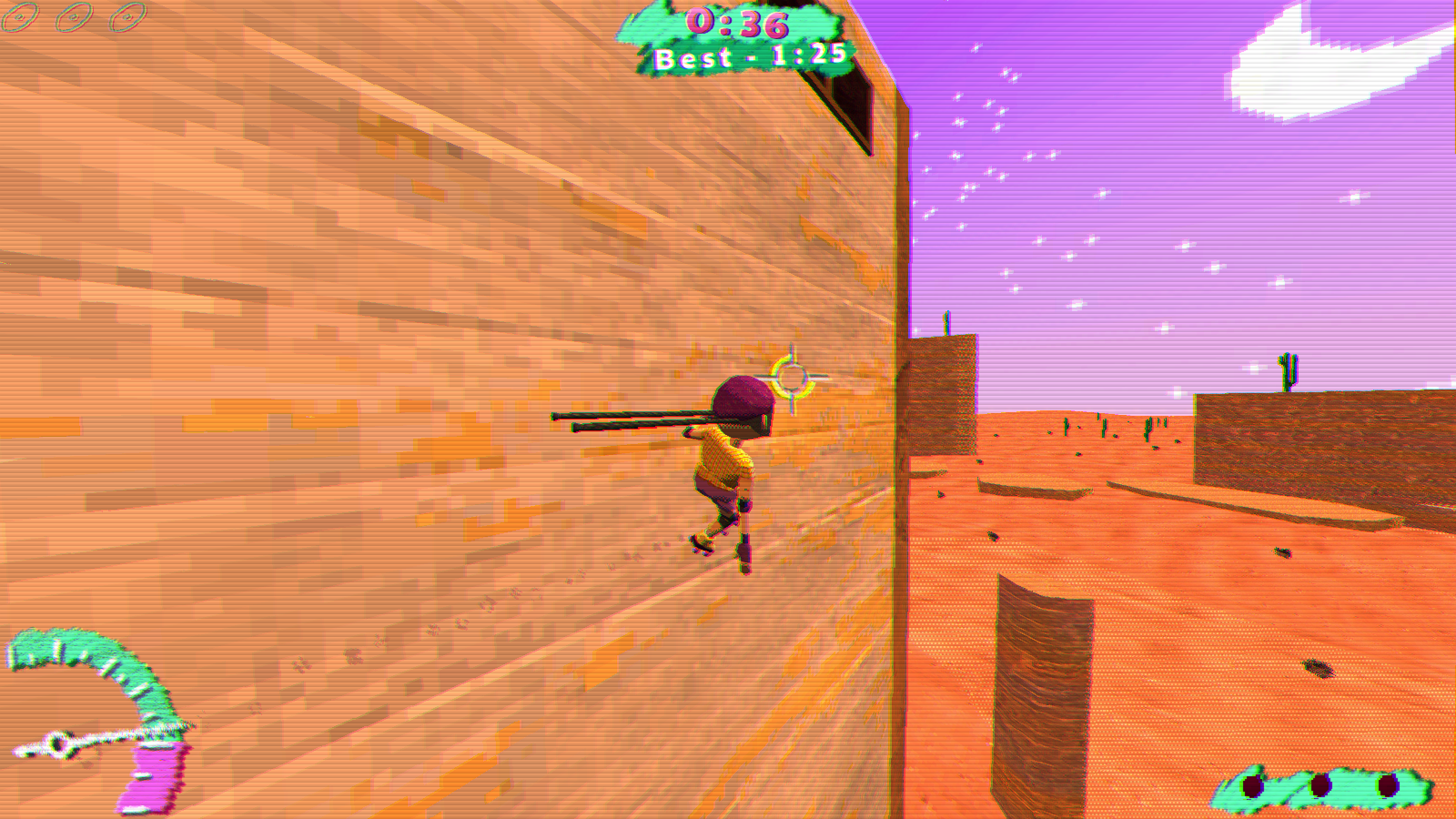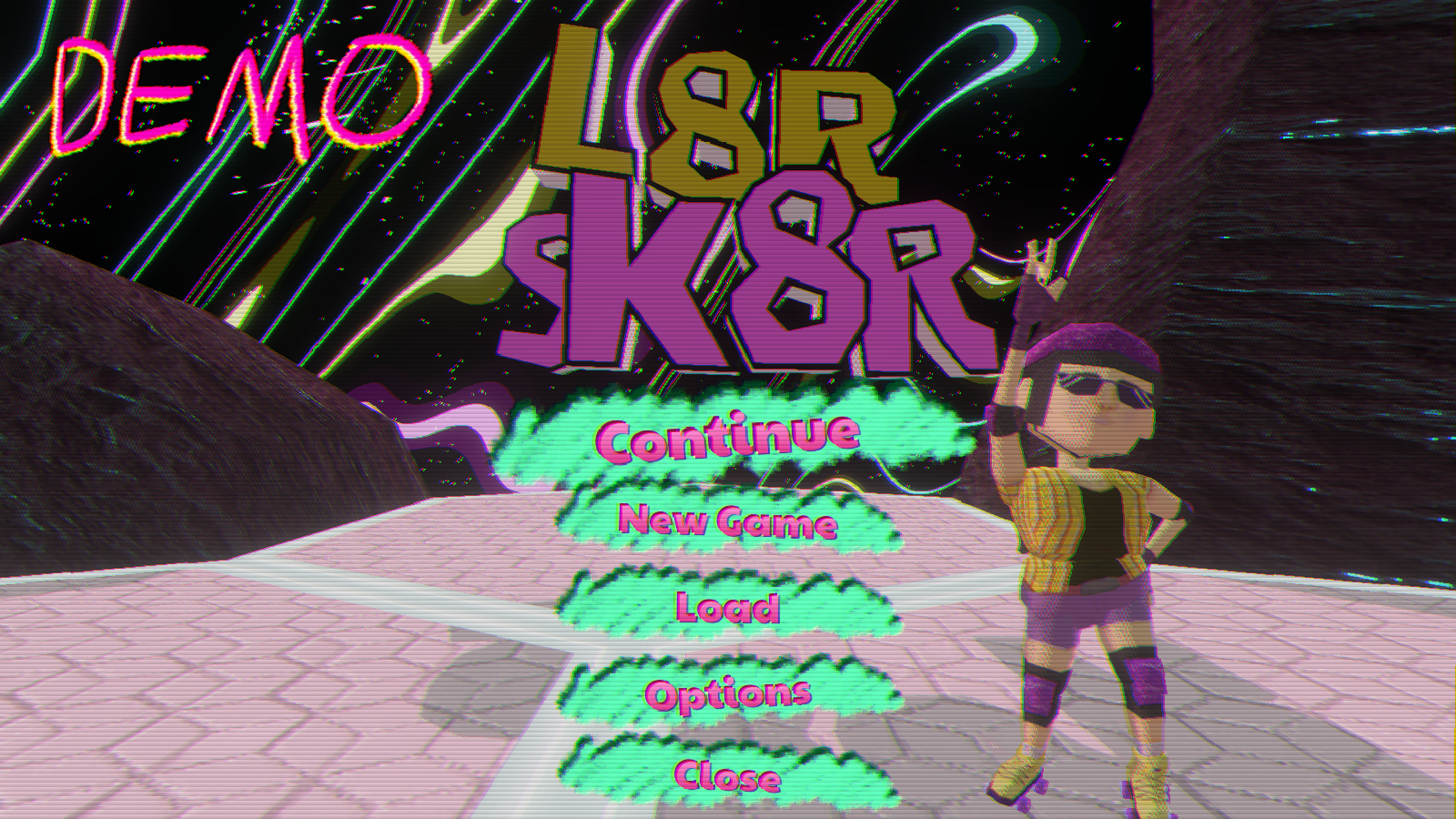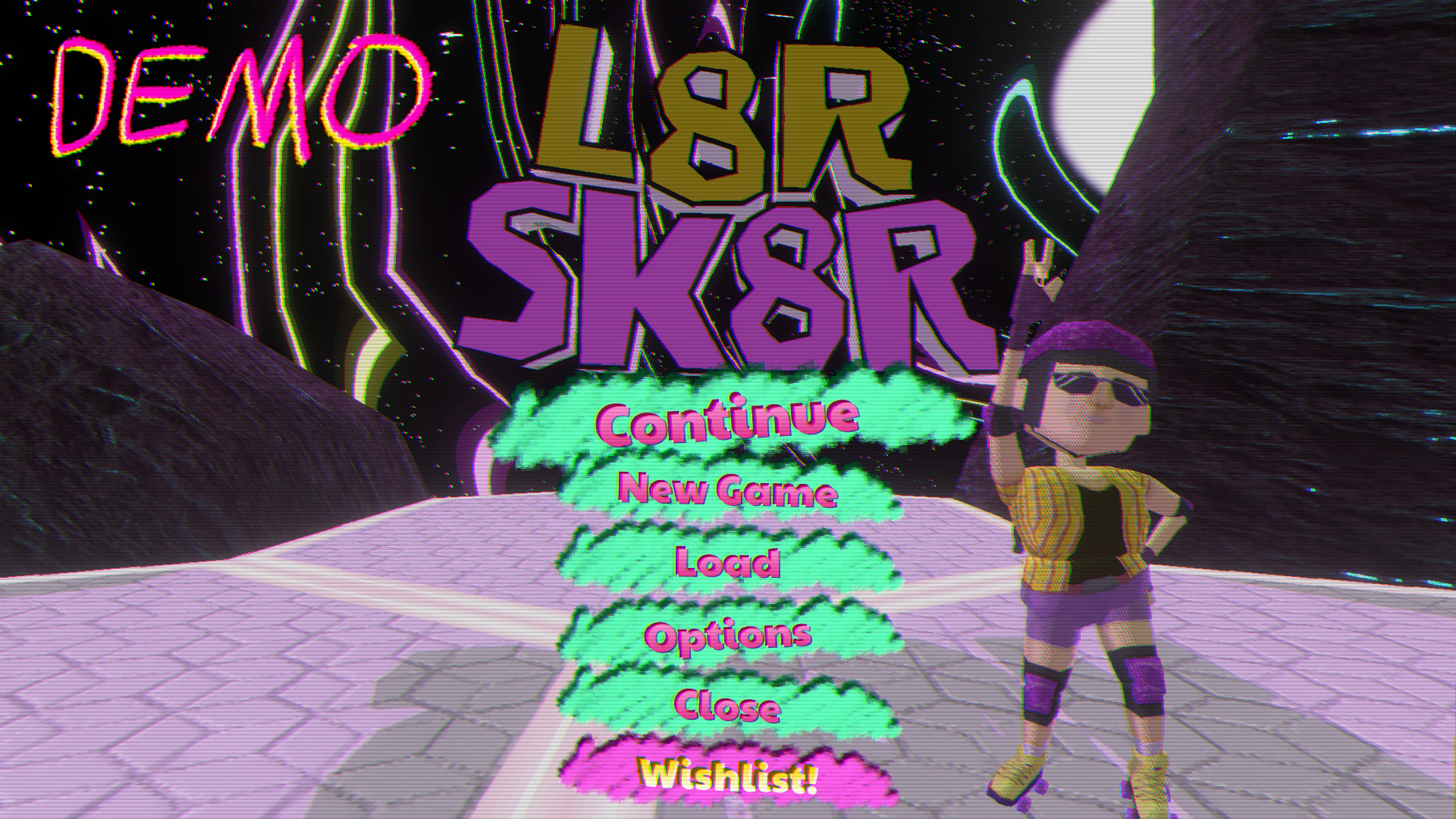 L8R SK8R is a retro inspired 3D platformer, with an emphasis on speed and dripping with a 90's aesthetic.