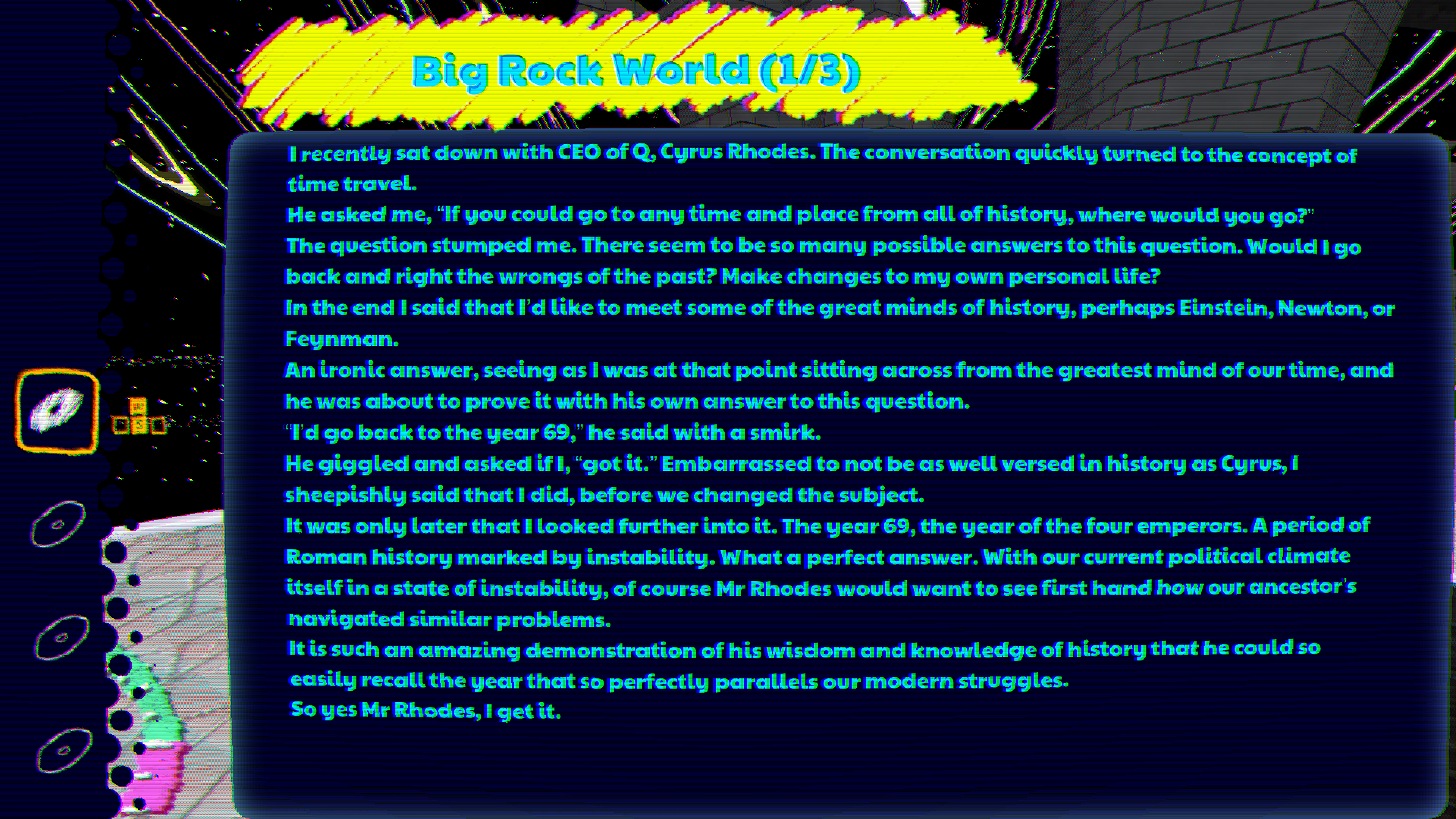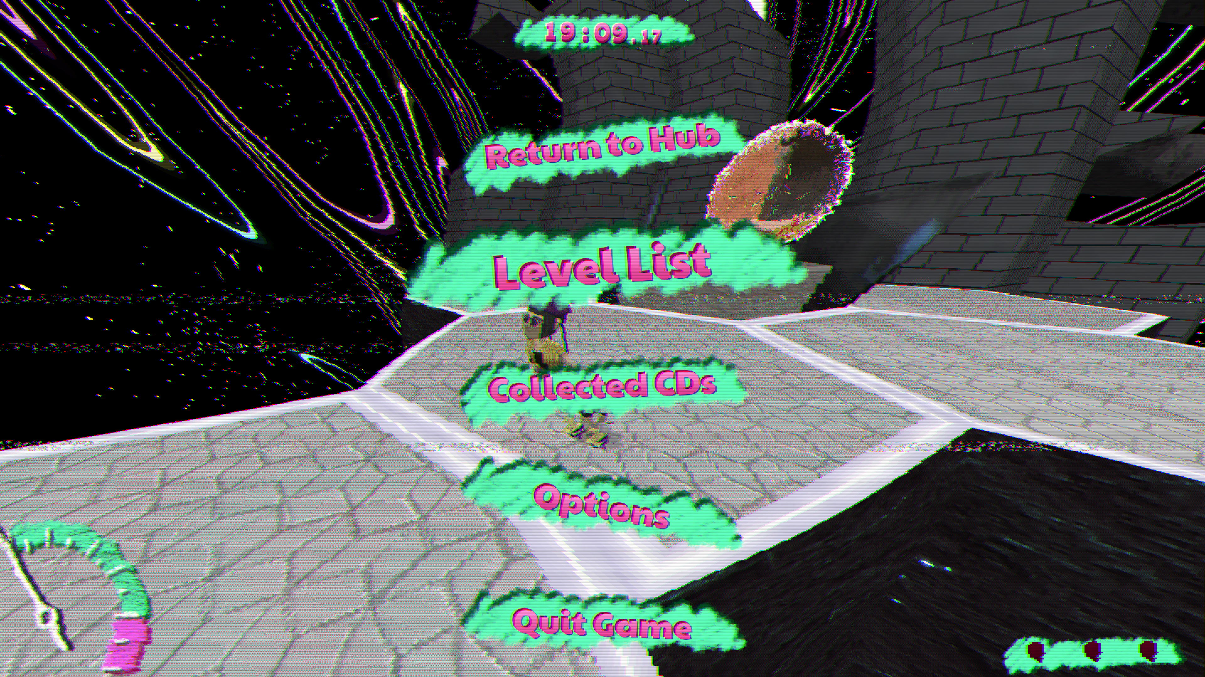 However, the story is largely told in the background. If the player collects CDs hidden in each level, then they can learn more about the backstory of the game.