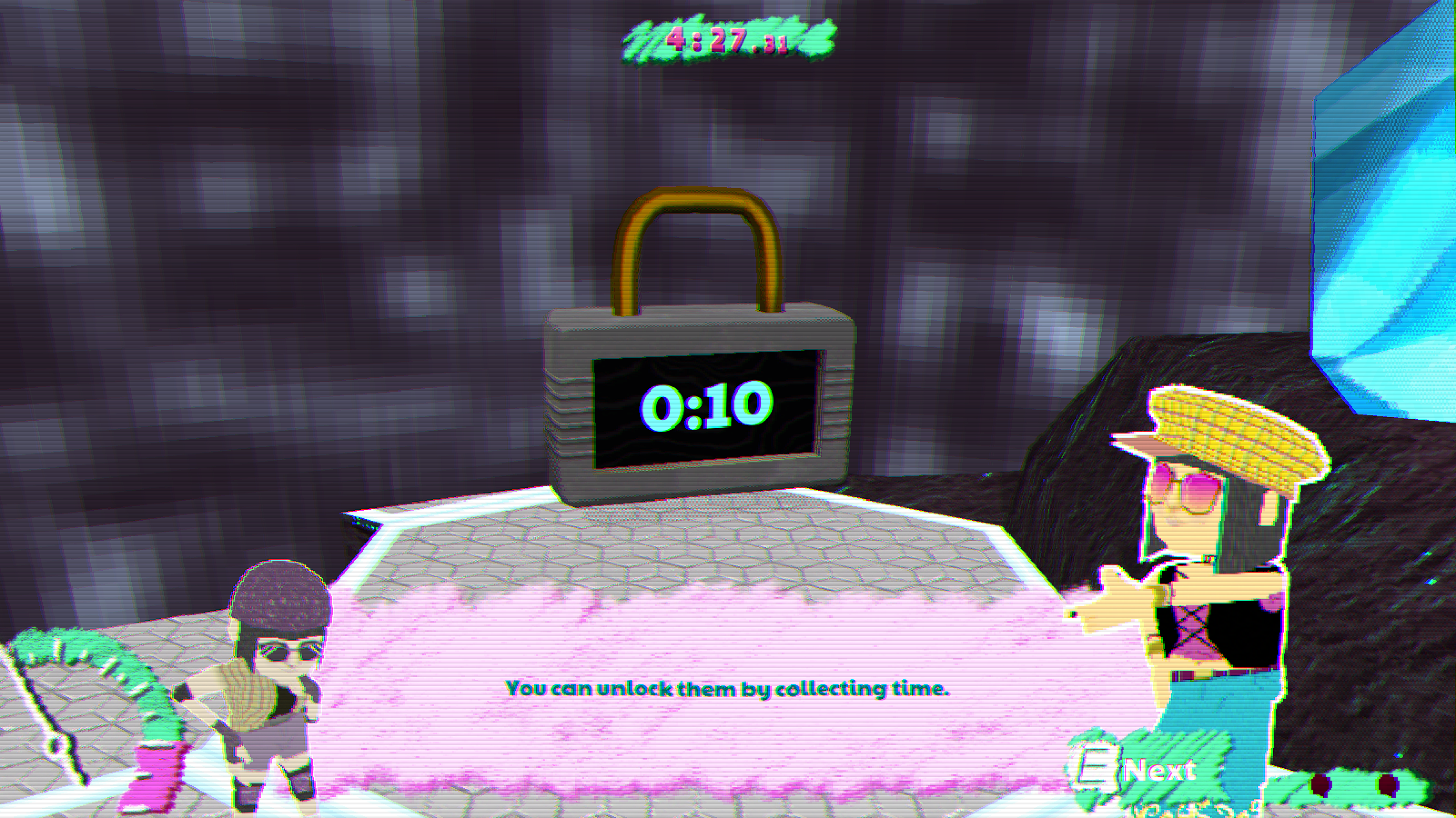 The player has a lot of options in how they approach these locks. If they need to collect another 5 minutes, they can beat 5 levels by 1 minute, 10 levels by 30 seconds, or any other combination.
